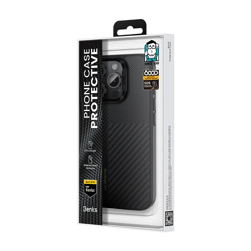 Чохол серії Montage Armor від бренду Benks для iPhone – це інноваційний аксесуар, створений із застосуванням високоякісного арамідного волокна DuPont™ Kevlar® 600D та 1500D, який забезпечує безкомпромісний захист вашого смартфона та відзначається сучасним мінімалістичним дизайном.