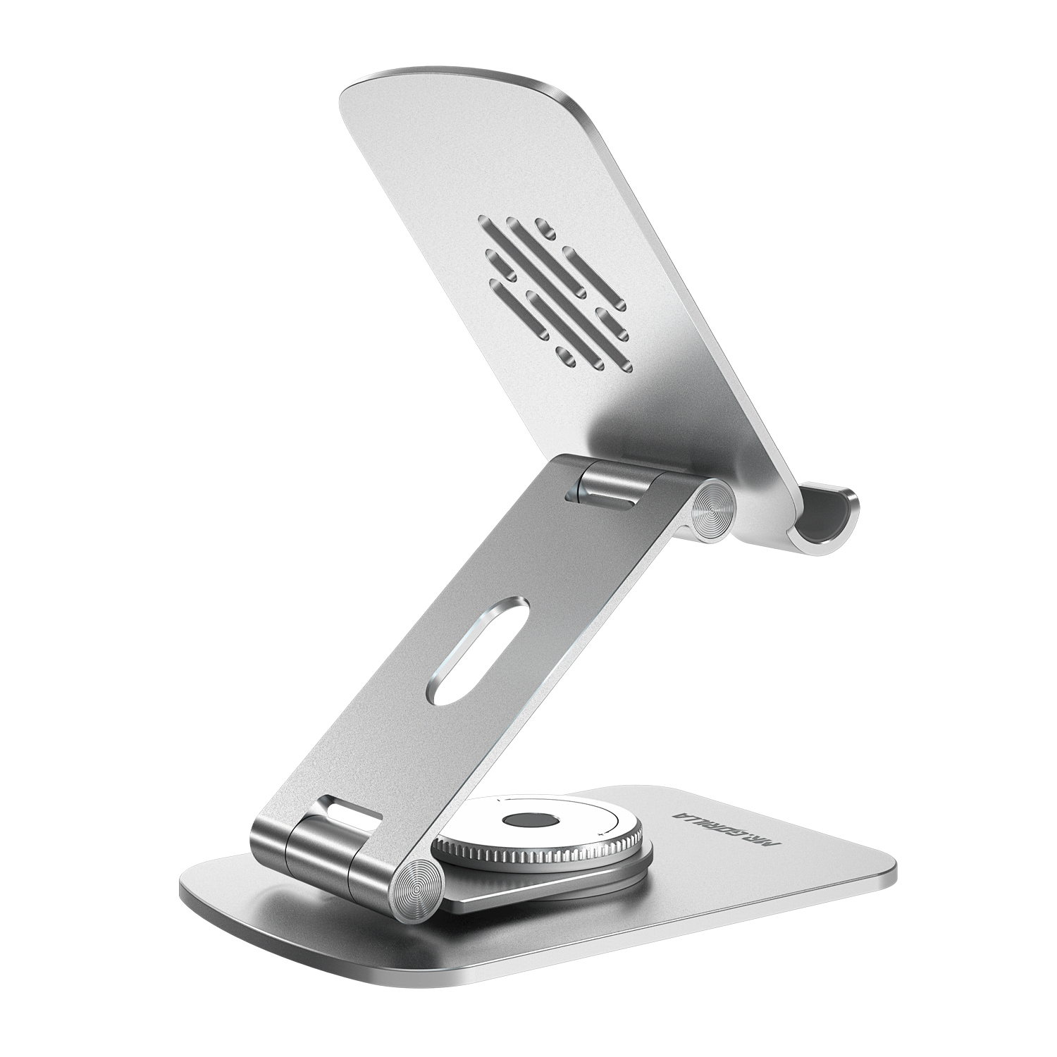 Обертальна система дозволяє швидко змінювати орієнтацію пристрою, що забезпечує максимальний комфорт під час роботи. Підставка легко регулюється і зручна для використання як на робочому столі, так і в подорожах.