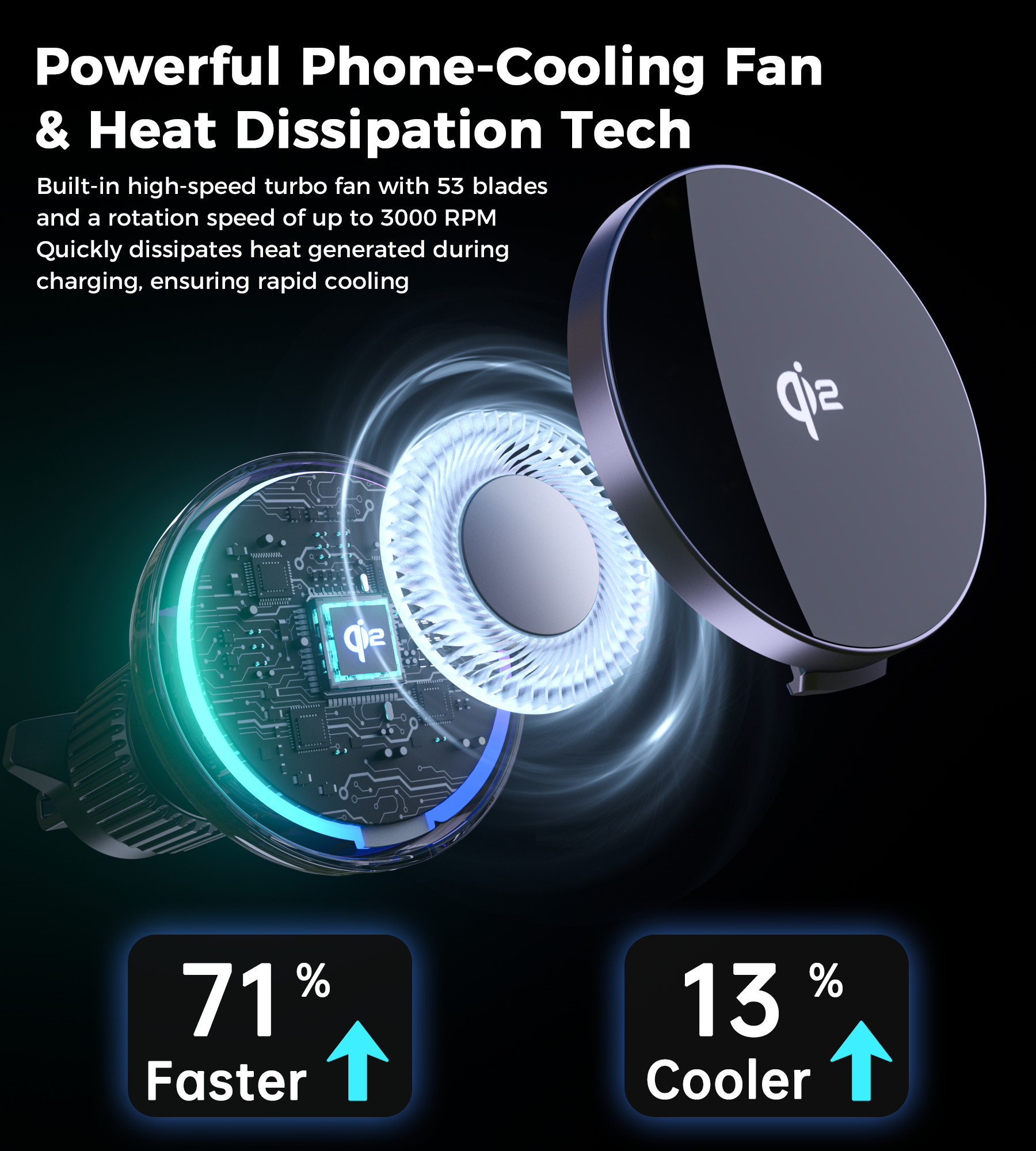 Заряджайте ваш iPhone максимально зручно з новим магнітним зарядним пристроєм Choetech 15W Qi2 Fan Cooling Magnetic Car Charger. Завдяки технології Qi2, вбудованому вентилятору охолодження та LED-підсвітці, ця модель забезпечує стабільну зарядку до 15W навіть у найспекотніших умовах. Ідеальне рішення для сучасного авто.