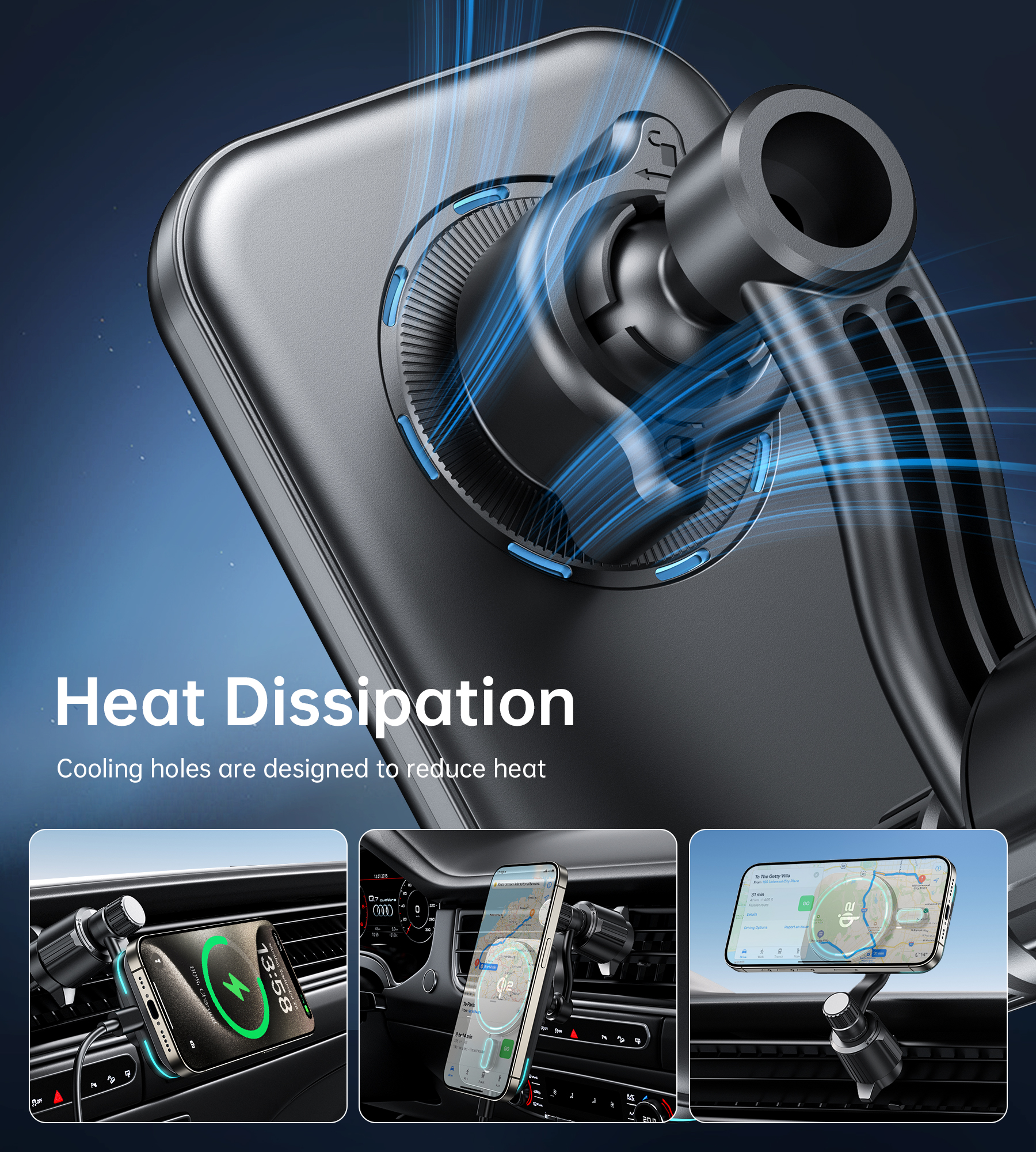 - Максимальна потужність 15W – швидка бездротова зарядка для смартфонів.