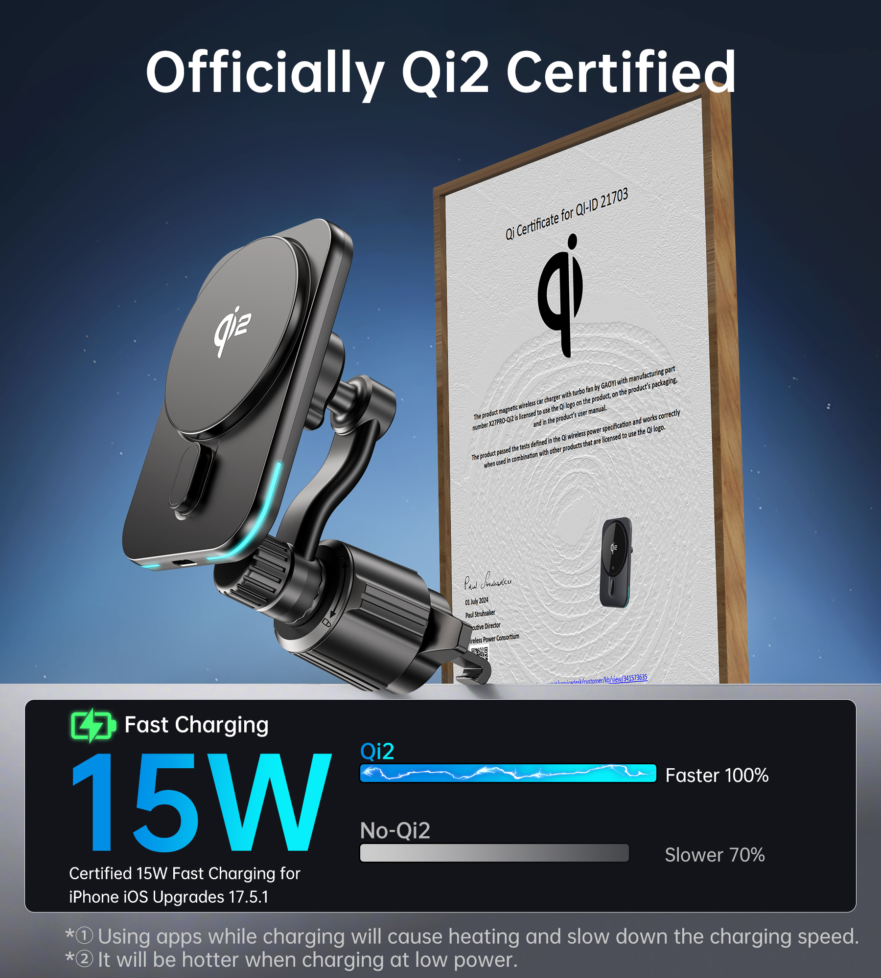 - Сертифікації: FCC, CE, RoHS, Qi2 – відповідність міжнародним стандартам безпеки та якості.